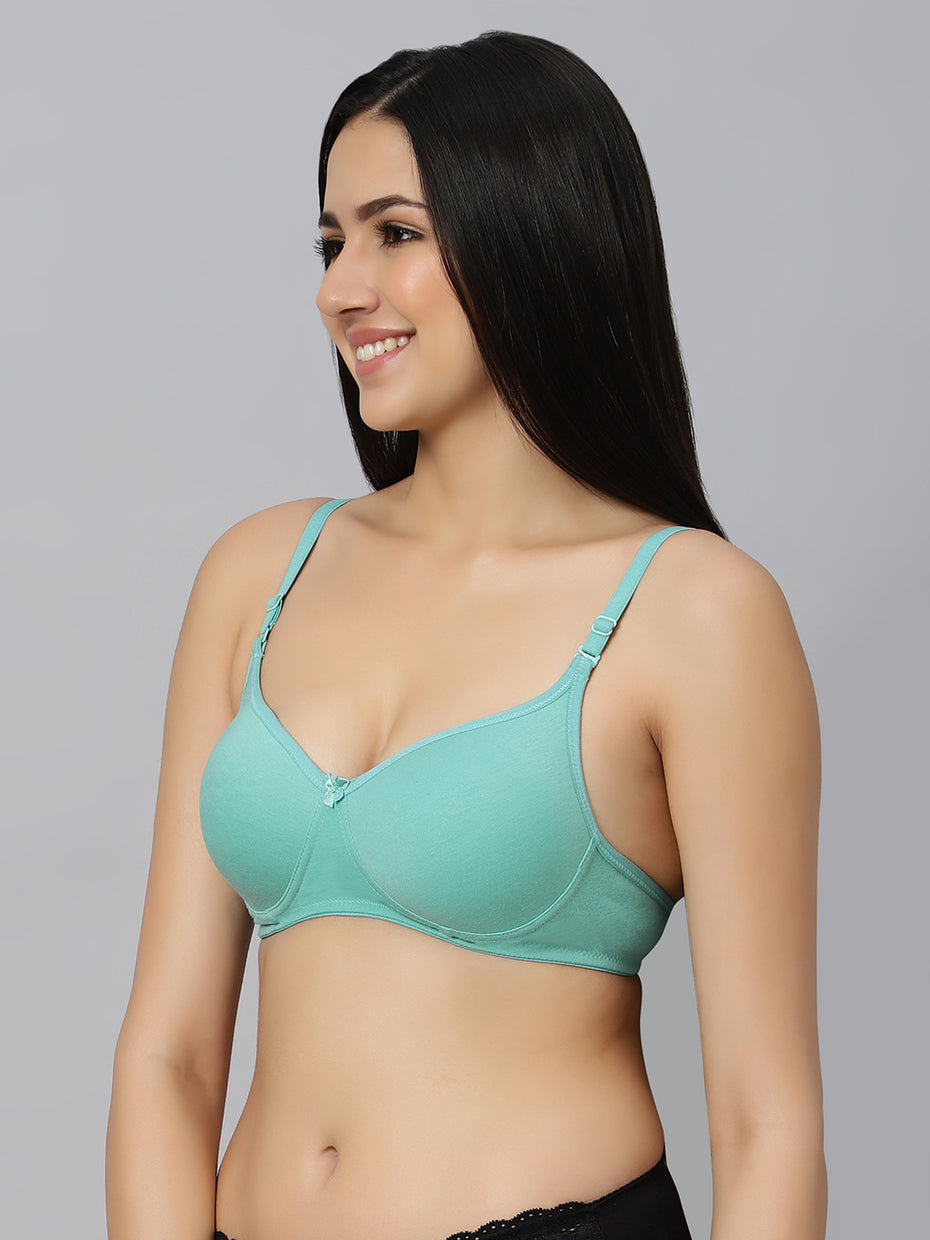 Vendor:Blue NixieBlueNixie BN0210 Cotton Rich T-Shirt Bra 2 Pcs.Combo Of Black & Skin Made of combed cotton rich bio washed fabric in molded cups in full coverage design. Broad shoulder straps for better support. Soft under bust band for comfort. Extra side panels on cups for hiding bulges. Mold cups for smooth looks. Best suited for tight apparels...