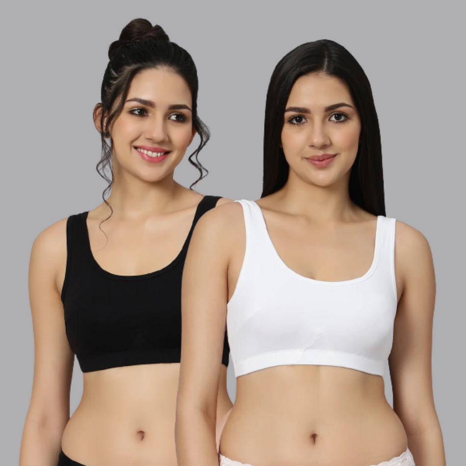 BlueNixie Slip On Sports Bra Combo set of 2 Black-White Color-