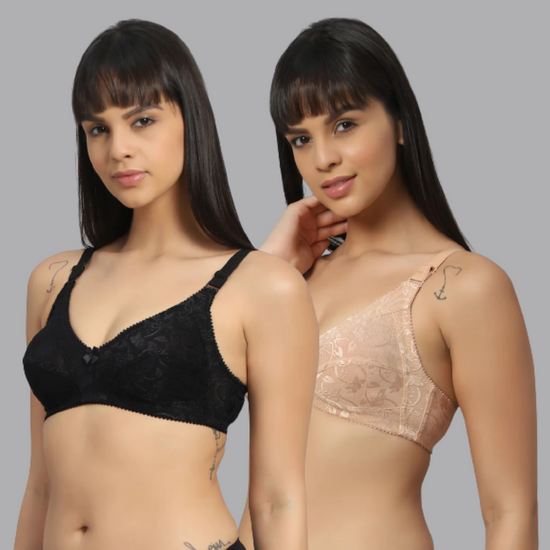 Bluenixie BNF356_2 Pc Combo Full Coverage Bra Black-Skin – Blue Nixie