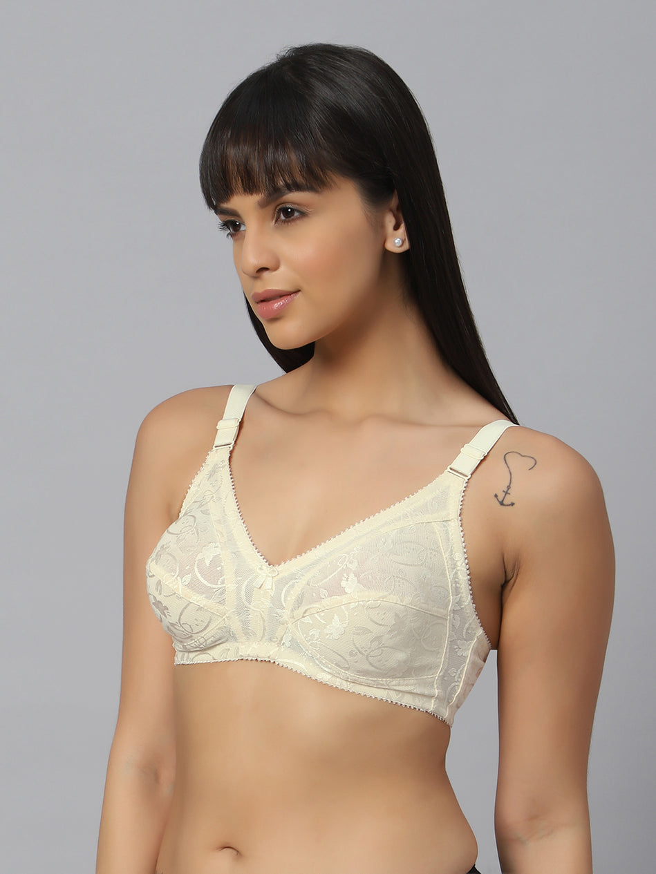 Made of fine quality butterfly print jacquard net stretchable fabric in full coverage design. Stretchable fabric for sung fit. Half cups have 100% cotton linings for maximum comfort. Broad shoulder elastic for better support. Extra panels along cups to minimize bulges on sides. Available in...