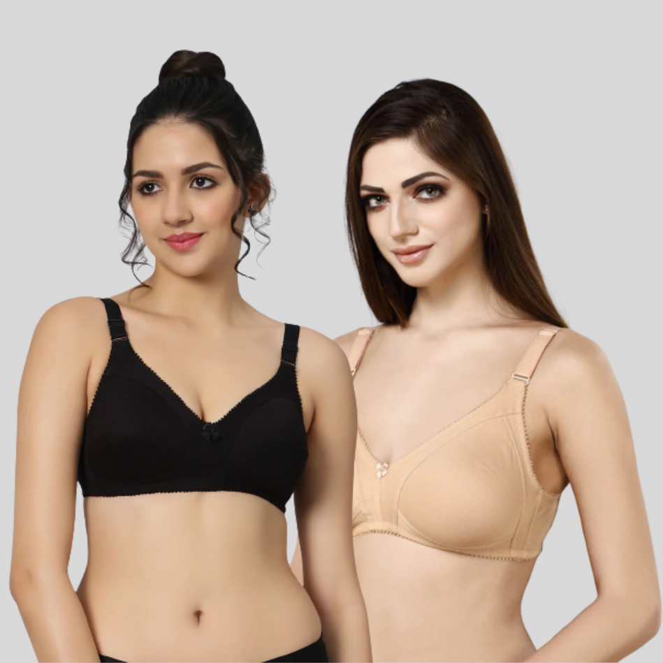 BlueNixie BN0210 Cotton Rich T-Shirt Bra 2 Pcs.Combo Of Black & Skin