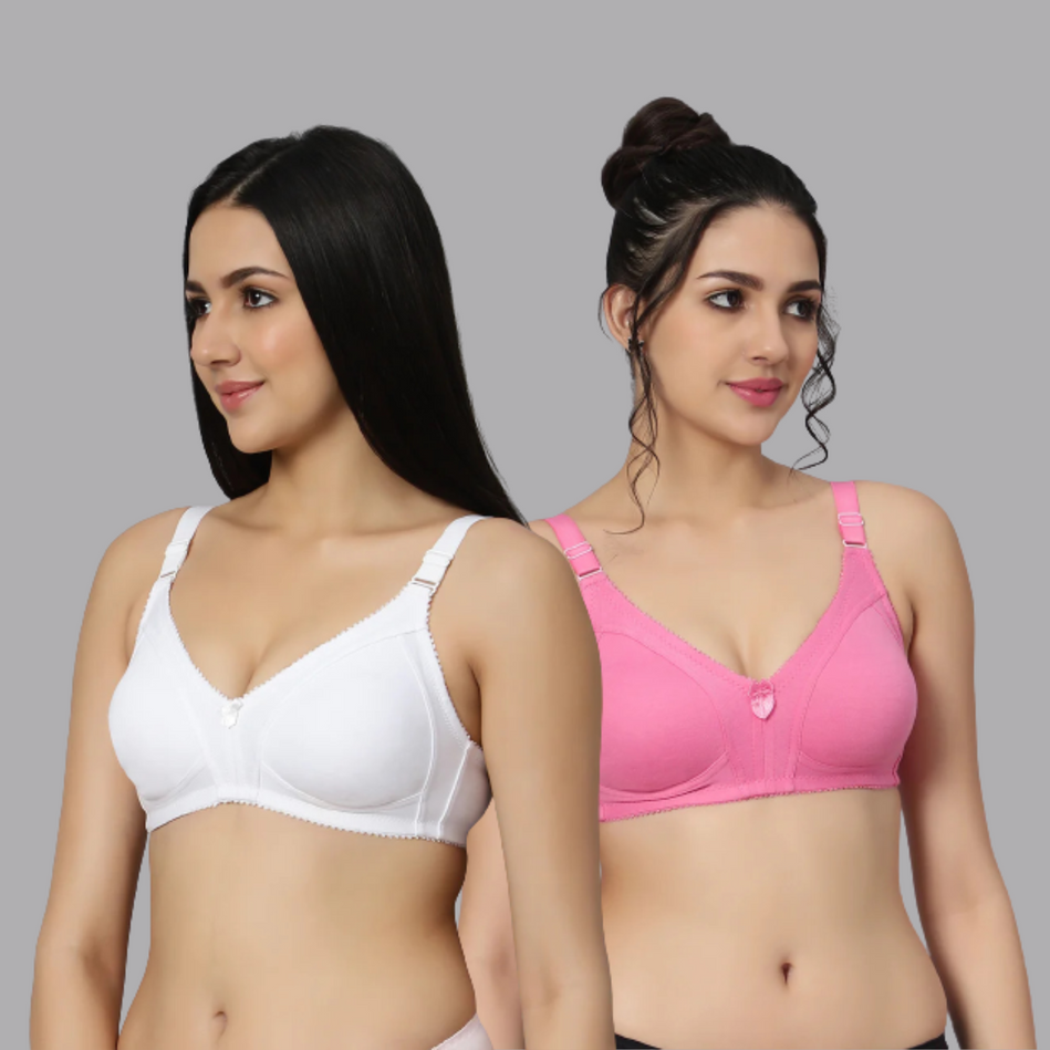 BlueNixie BN0210 Combo 2 pc Cotton Rich T-Shirt Bra Fuchsia-White