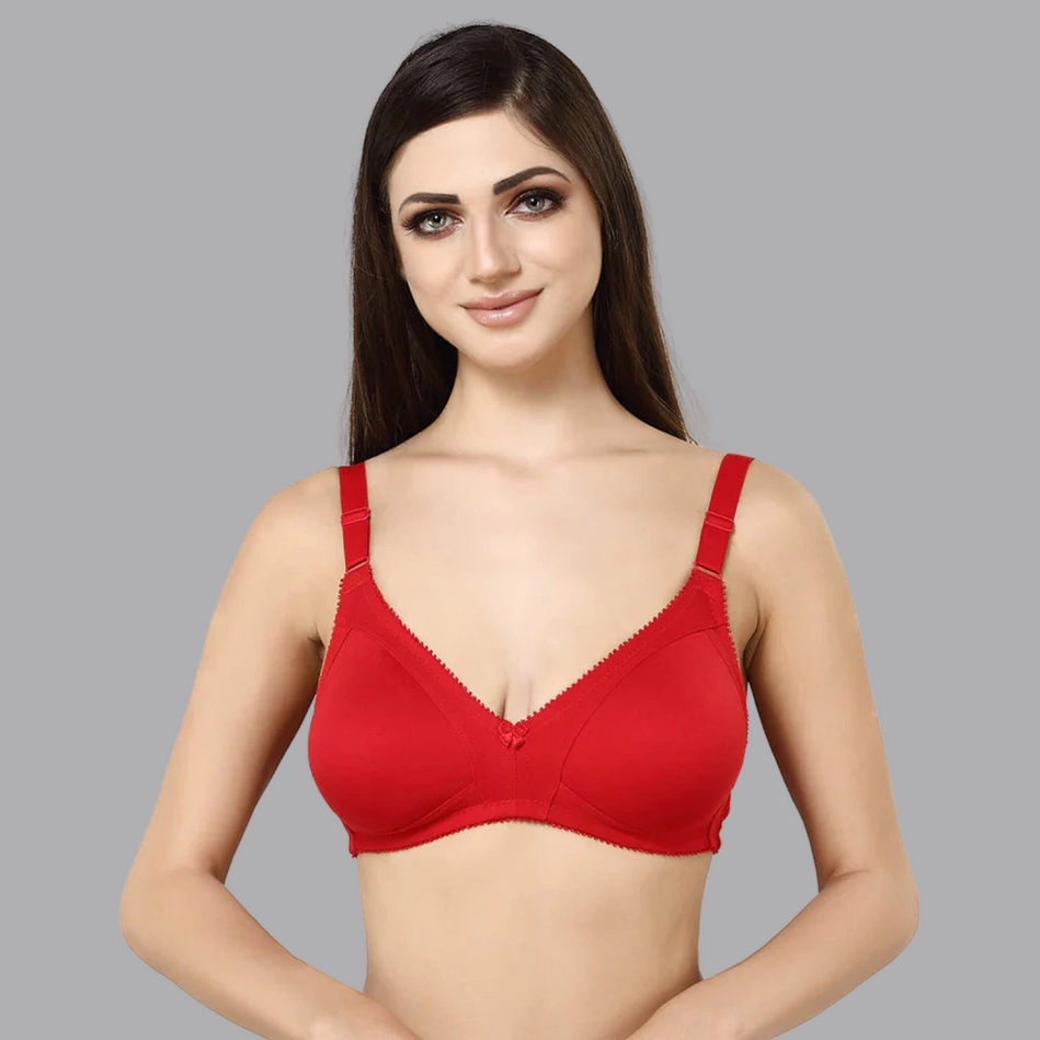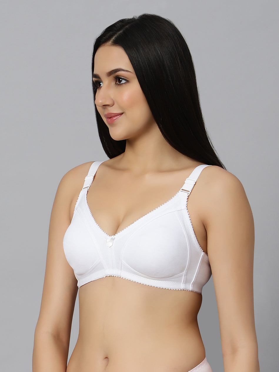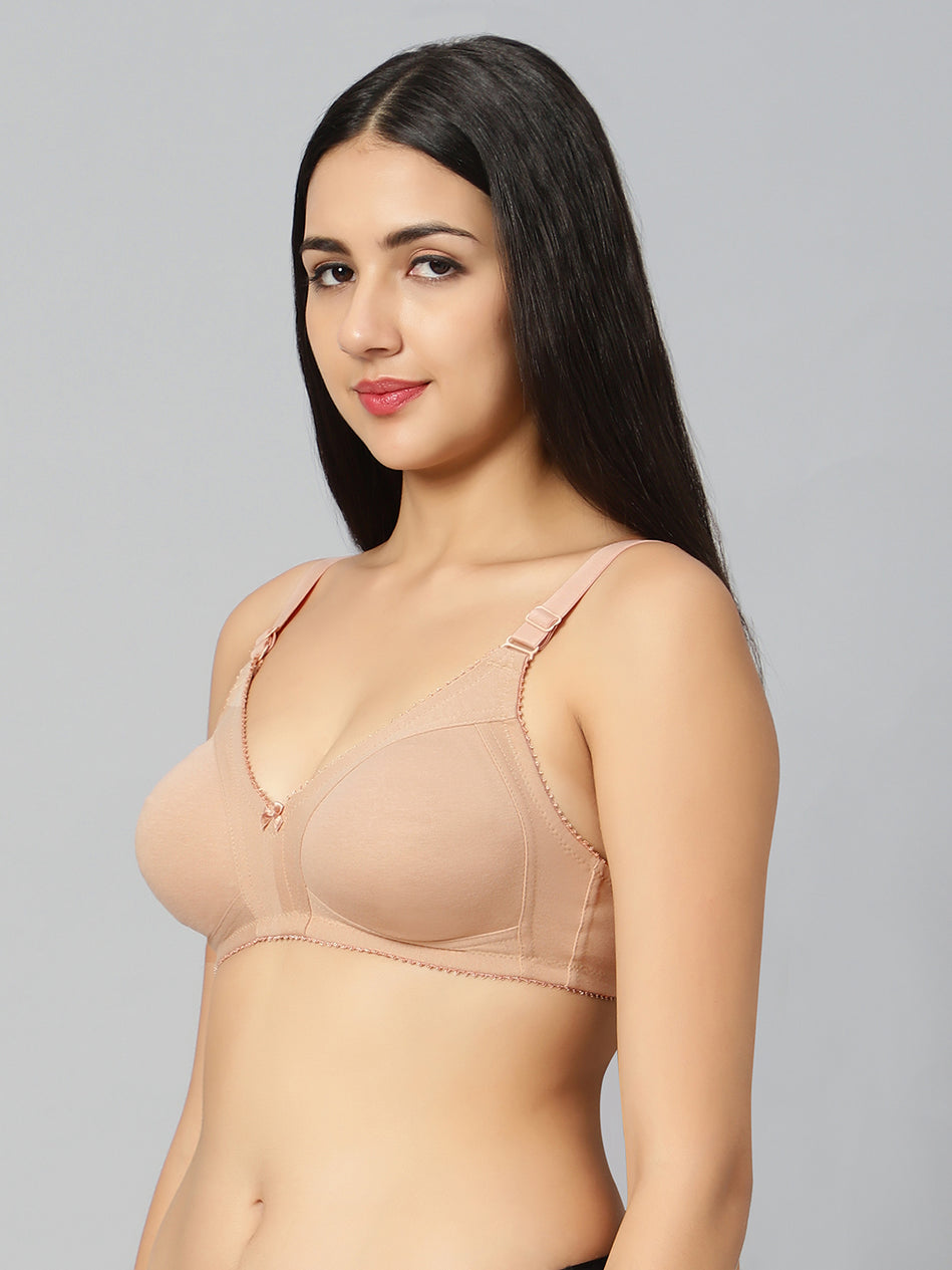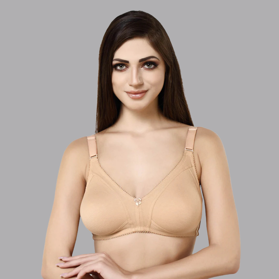 Made of combed cotton rich bio washed fabric in molded cups in full coverage design. Broad shoulder straps for better support. Soft under bust band for comfort. Extra side panels on cups for hiding bulges. Mold cups for smooth looks. Best suited for tight apparels...