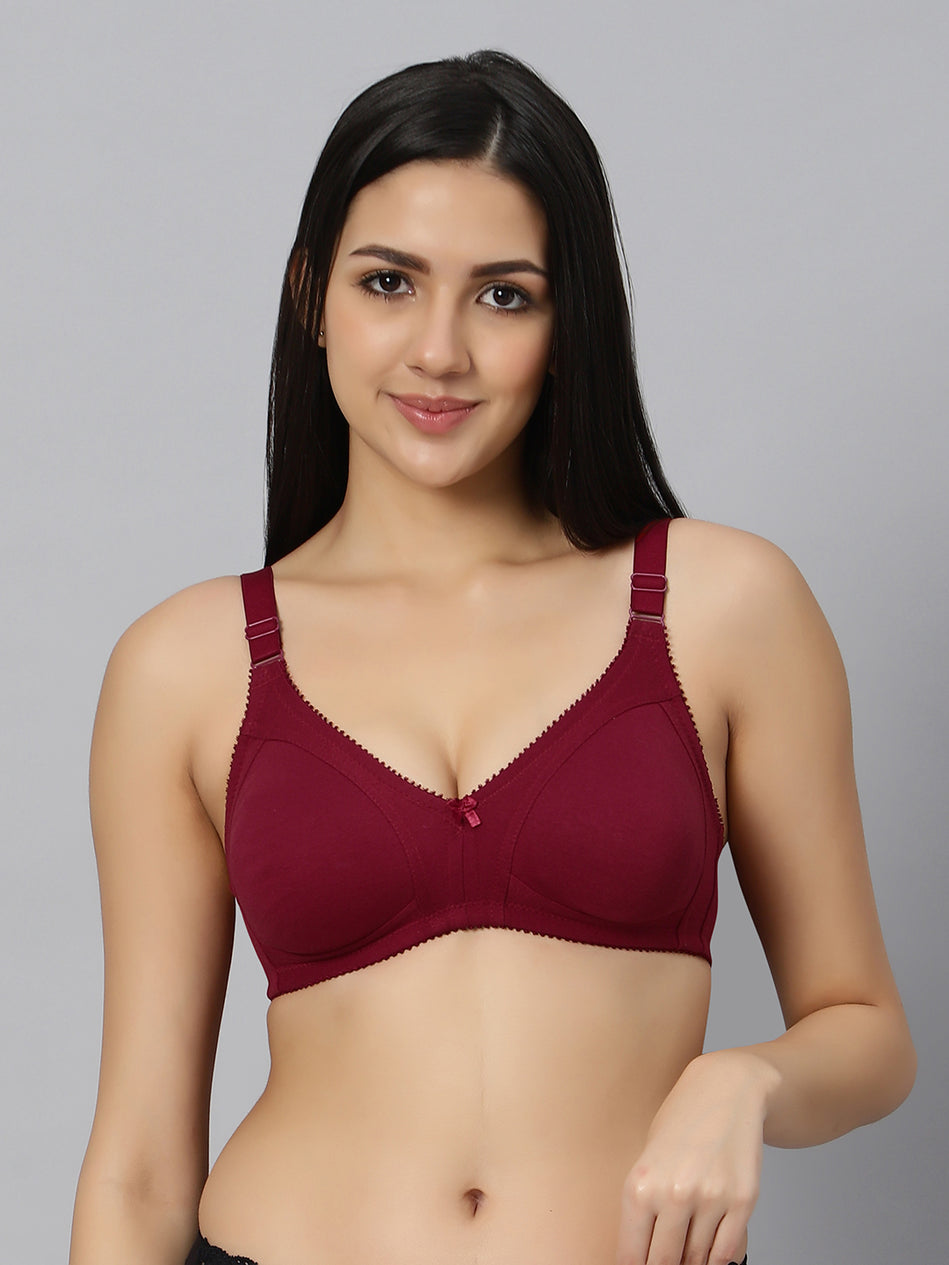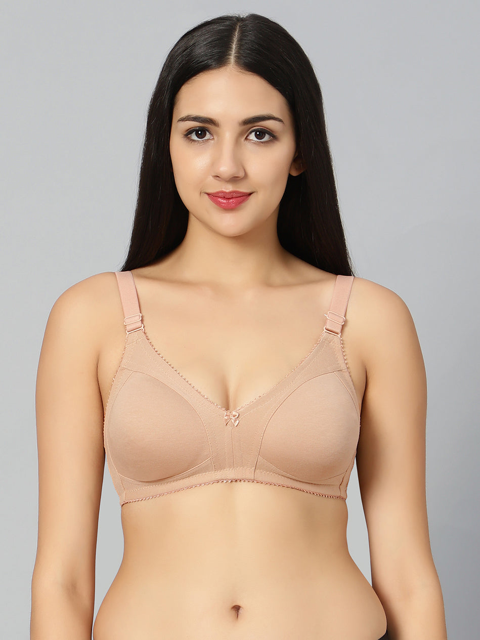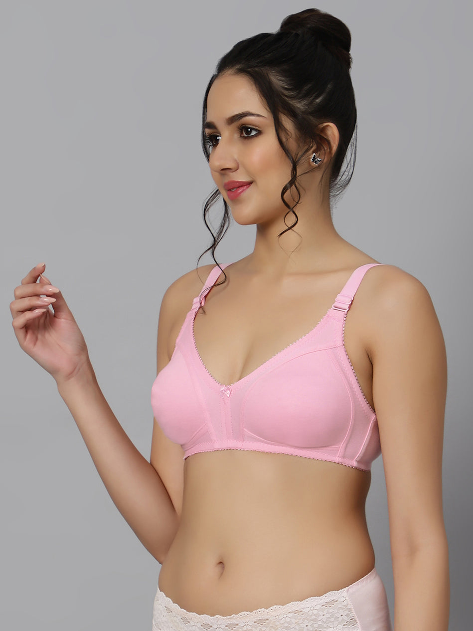 Made of combed cotton rich bio washed fabric in molded cups in full coverage design. Broad shoulder straps for better support. Soft under bust band for comfort. Extra side panels on cups for hiding bulges. Mold cups for smooth looks. Best suited for tight apparels...