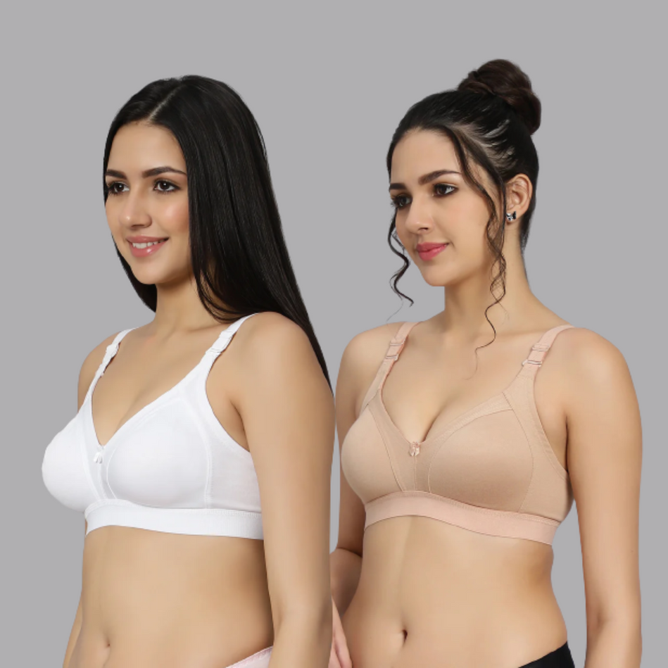 Bluenixie BN2514_2 Pc Full Coverage Cotton Rich Full Coverage T-shirt Bra White-Nude Skin