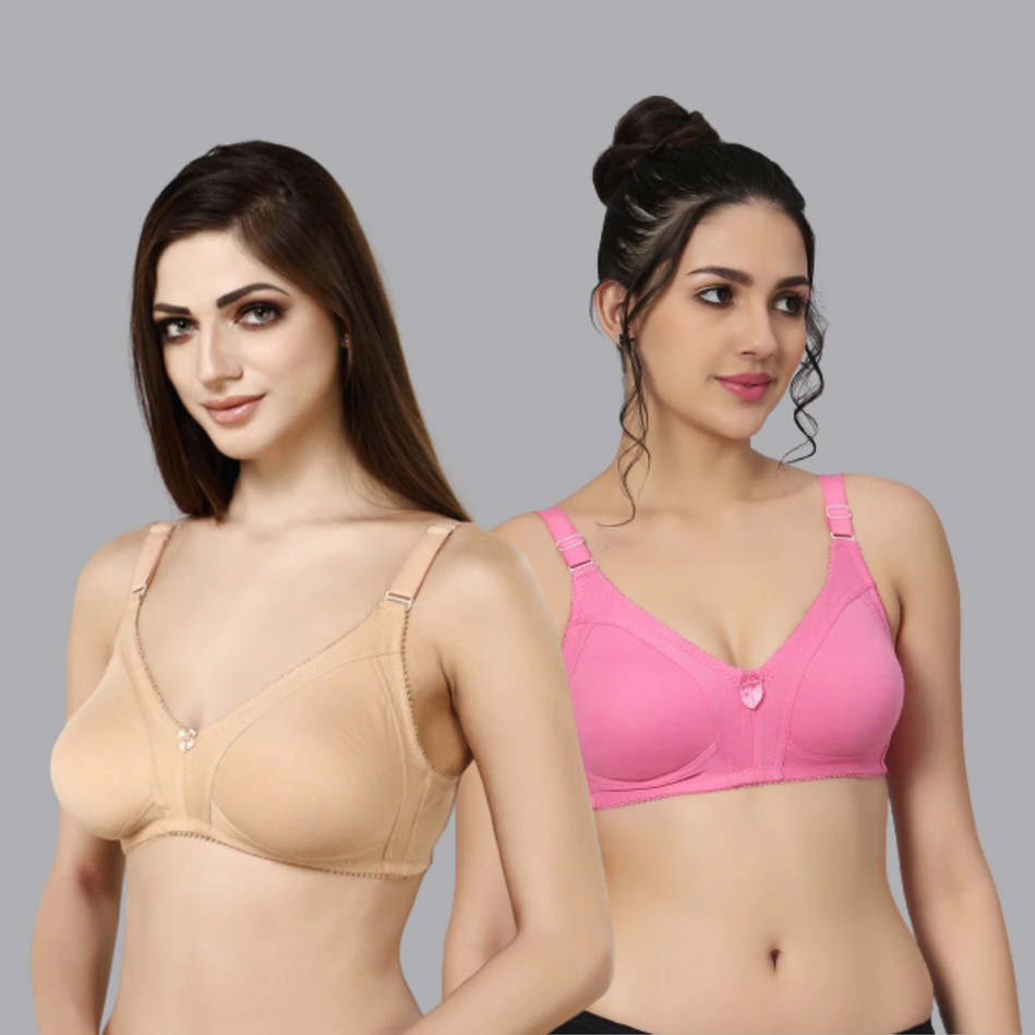 BlueNixie BN0210 Cotton Rich T-Shirt Bra Combo set of 2 Skin & Fuchsia Colors