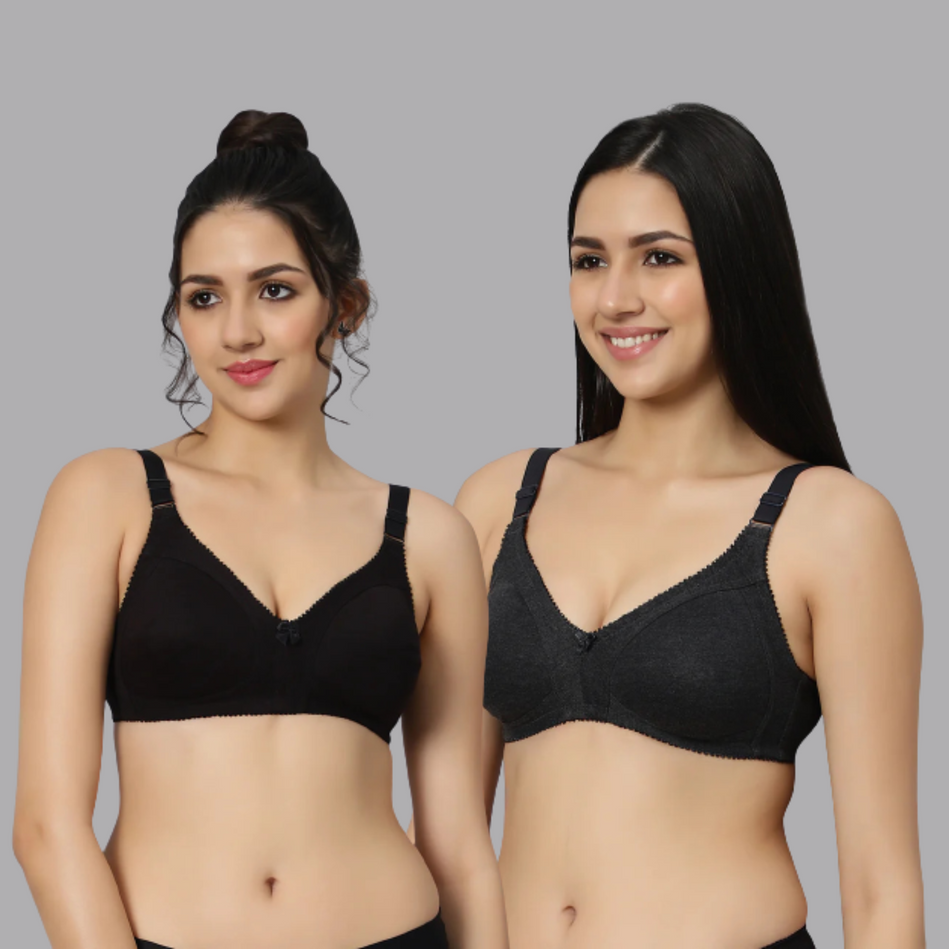 BlueNixie BN0210 Cotton Rich T-Shirt Bra Combo set of 2 Grey-Black
