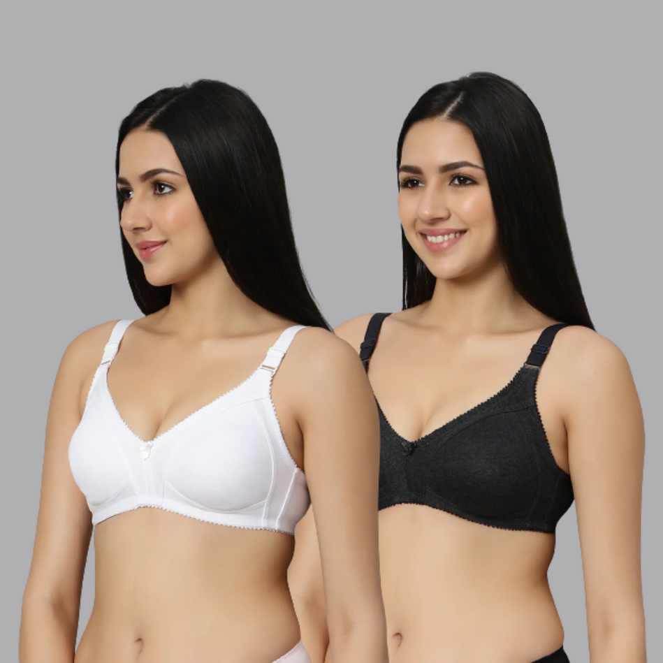BlueNixie BN210 Cotton Rich T-Shirt Bra Combo set of 2 Grey-White Colors