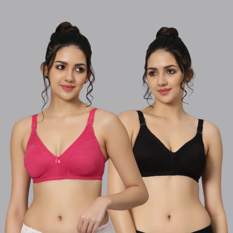 BlueNixie BN0210 Cotton Rich T-Shirt Bra Combo set of 2 Pink-Black Colors