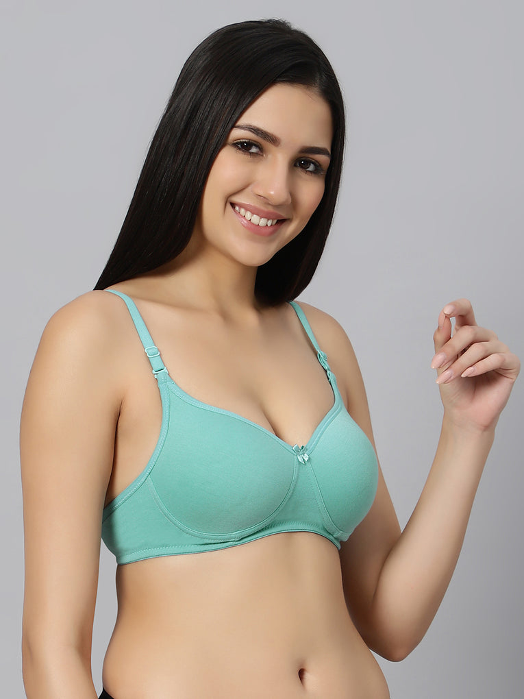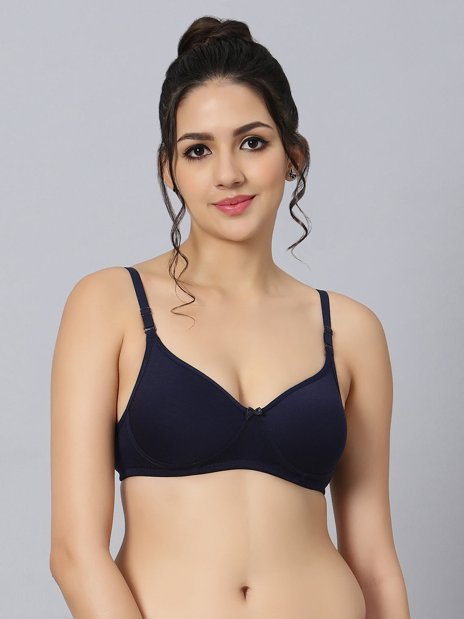 Padded bra with removable straps options .Soft molded pads with cotton rich  fabric overlapping to minimize the line on tight fitting apparels. Low back sides for all kind of outfits. Free pair of transparent straps with this bra. Available in variety of colors to match your...