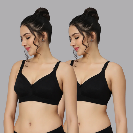 Buy Cotton Rich Full Coverage T-Shirt Bra Combo set of 2 Black Colors - Bluenixie – Blue Nixie